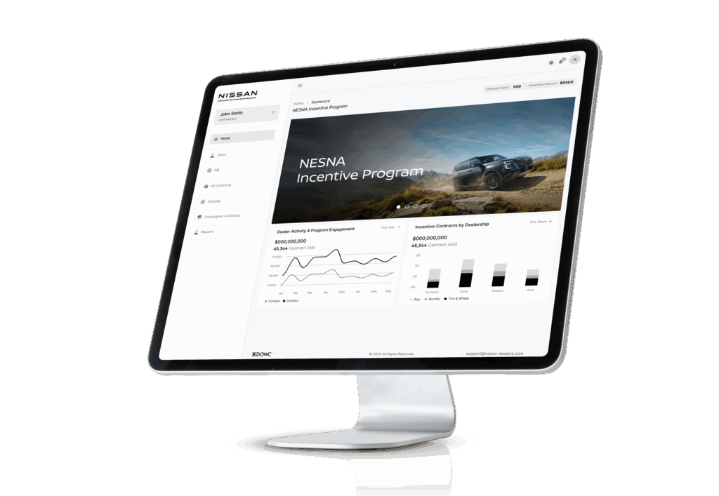 F&I Managers and Dealerships can log in to the NESNA Incentive Portal to track performance, review growth progress, and view payout details in real time.